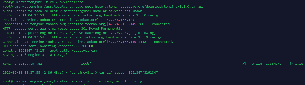 sudo tar -xzvf tengine-3.1.0.tar.gz