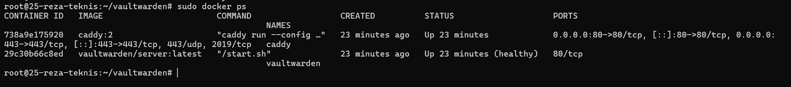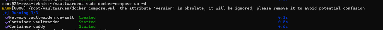 - Jalankan Vaultwarden menggunakan docker-compose.