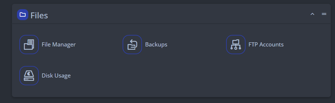 Fitur Files pada SPanel digunakan untuk mengelola seluruh file dan penyimpanan website yang ada di server. Melalui menu ini, Anda dapat melakukan pengaturan file, backup, hingga akses FTP. Adapun menu yang tersedia pada fitur Files di SPanel antara lain: