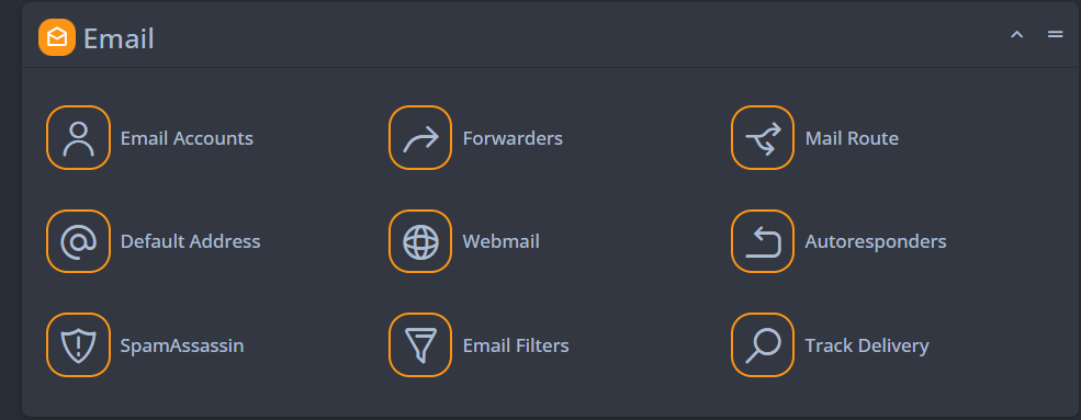 - Email Accounts, digunakan untuk membuat dan mengelola akun email dengan nama domain sendiri.