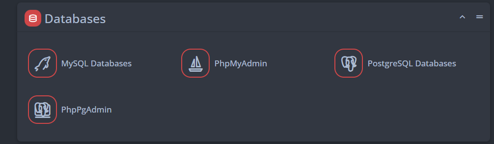 - MySQL Databases, digunakan untuk membuat dan mengelola database MySQL beserta user dan hak aksesnya.