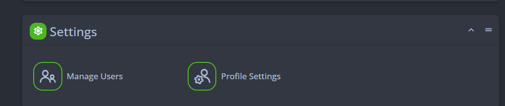 Fitur Settings digunakan untuk mengelola pengaturan akun dan akses pengguna pada SPanel. Menu yang tersedia antara lain: