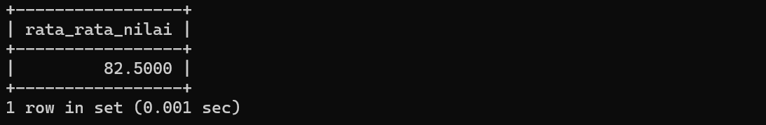 FROM nilai_mahasiswa;Berikut hasil rata – rata yang didapati :