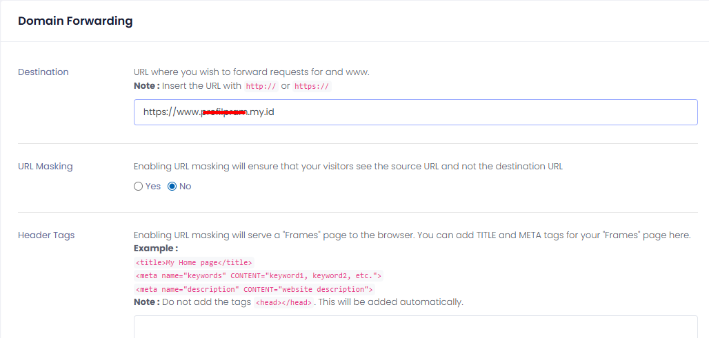 - Isi destination Domain forwarding ke alamat subdomain www. Hal ini dilakukan supaya domain utama juga mengarah ke subdomain www yang mengarah Scalev. Lalu Klik “Save Change”.