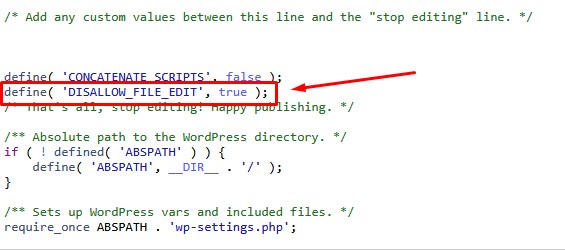 define( 'DISALLOW_FILE_EDIT', true );