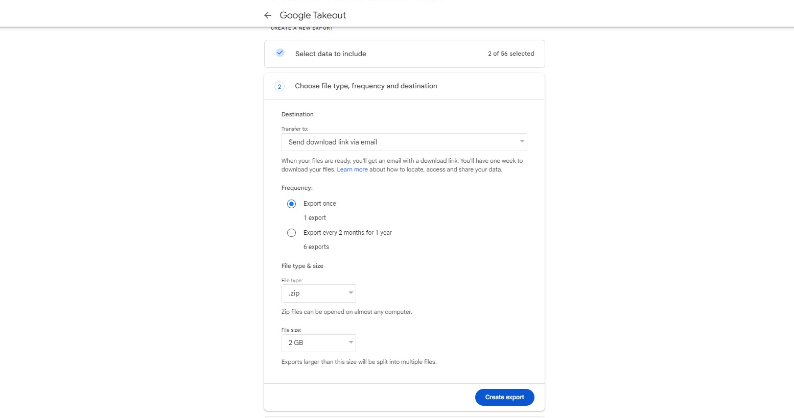 - Kemudian tunggu proses ekspor selesai. Waktu yang dibutuhkan bervariasi, semakin besar kapasitas Gmail Anda, proses ekspor akan semakin lama.