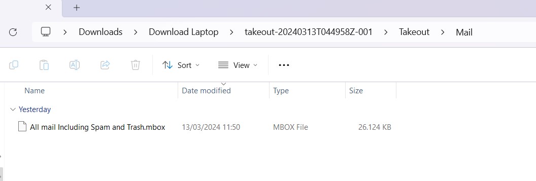 - Setelah proses download selesai, silakan ekstrak file dan cari file email dengan ekstensi file .MBOX