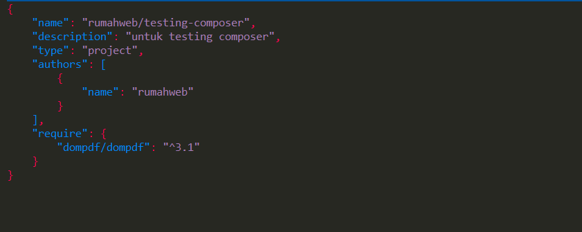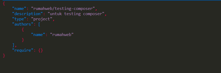 Perintah di atas akan menghasilkan file composer.json.