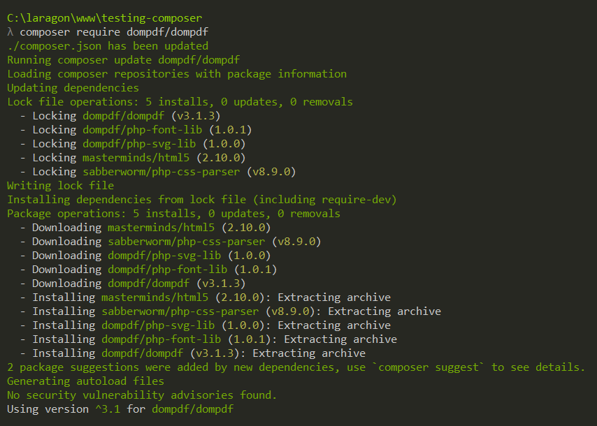 composer require dompdf/dompdf