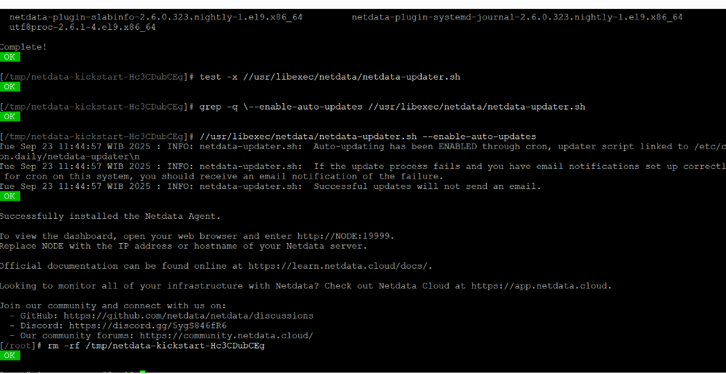 - BIla sudah sampai tahap seperti gambar di bawah ini, maka instalasi netdata sudah selesai.