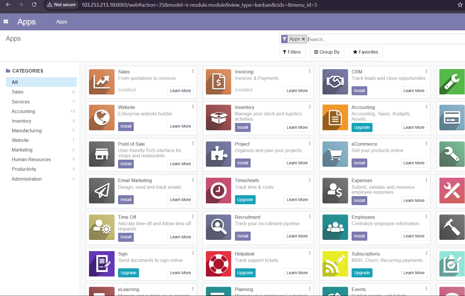 Sampai tahap ini, Anda telah berhasil mengistal Odoo pada VPS Almalinux. Selanjutnya, silakan dapat melakukan konfigurasi atau install aplikasi yang diinginkan pada Odoo sesuai kebutuhan Anda.