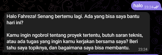 - Jika berhasil, maka AI Agent Anda akan membalas pesan yang dikirimkan.