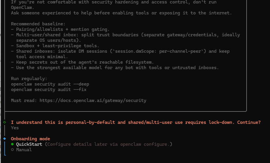 - Tahap selanjutnya, pilih opsi “Yes” dan juga “QuickStart“.