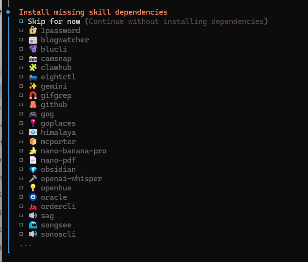 - Selanjutnya Anda akan diminta untuk melengkapi konfigurasi skill atau kemampuan yang nantinya akan dimiliki oleh AI agent kita. Pada tahap ini sepenuhnya opsional tergantung kebutuhan dan keinginan Anda ingin memberikan kemampuan apa saja ke AI agent.