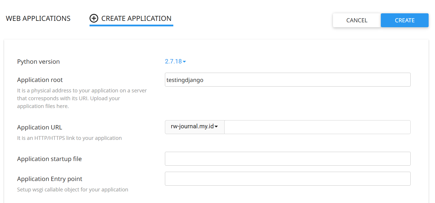 - Application Root: nama folder untuk meletakkan file aplikasi python yang akan digunakan