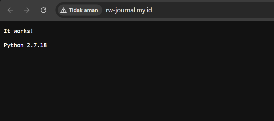 - Anda juga bisa mengakses domainnya untuk memastikan bahwa Python telah berjalan.
