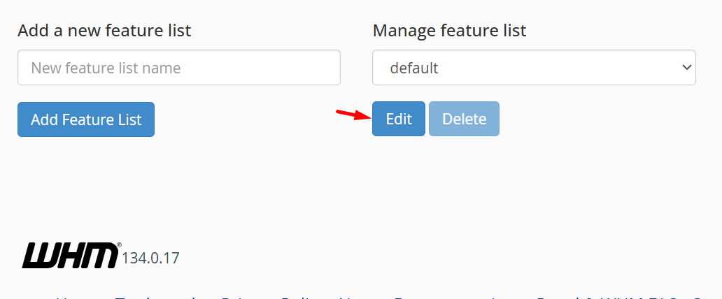 - Cari Feature Manager di menu WHM.