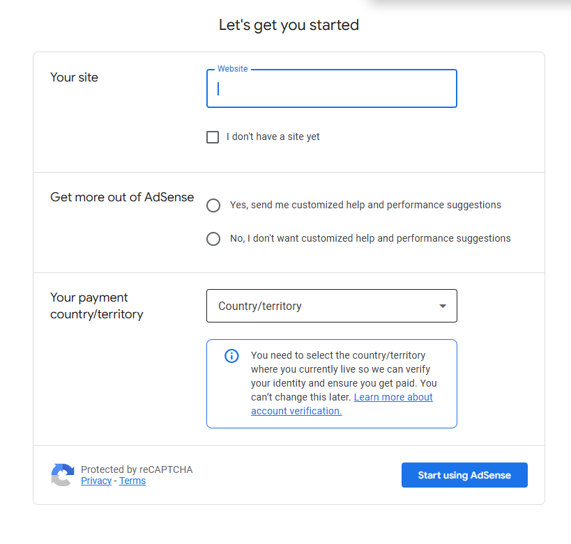 - Masukkan alamat website yang ingin dimonetisasi.