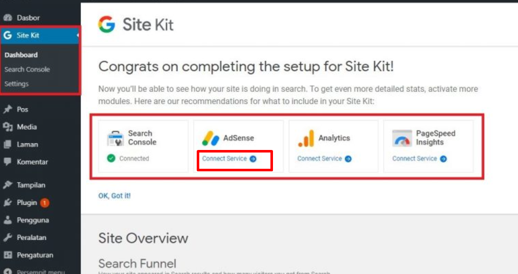 Panduan lengkapnya bisa Anda pelajari di artikel berikut: Google Site Kit: Pengertian, Fungsi dan Install di WordPress