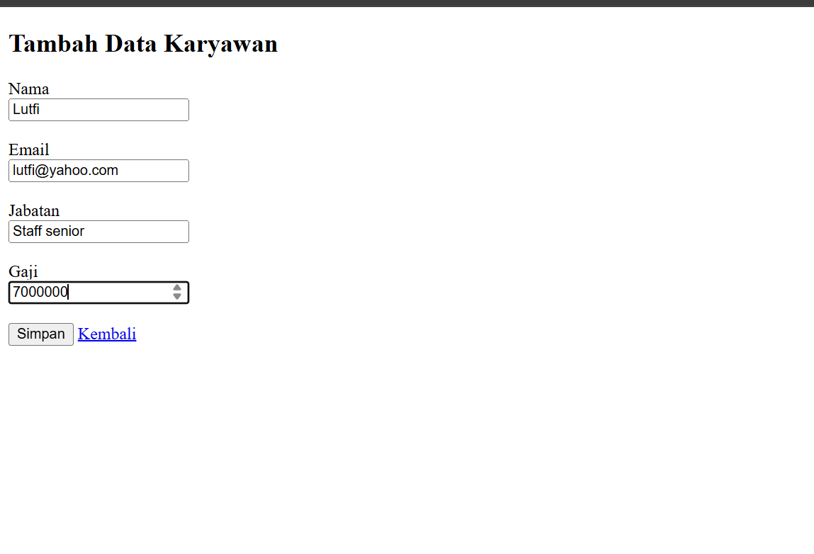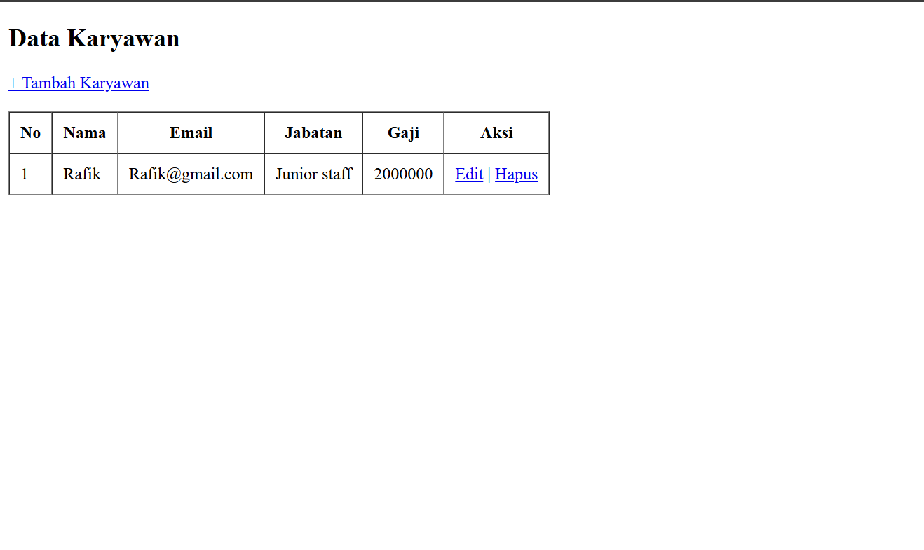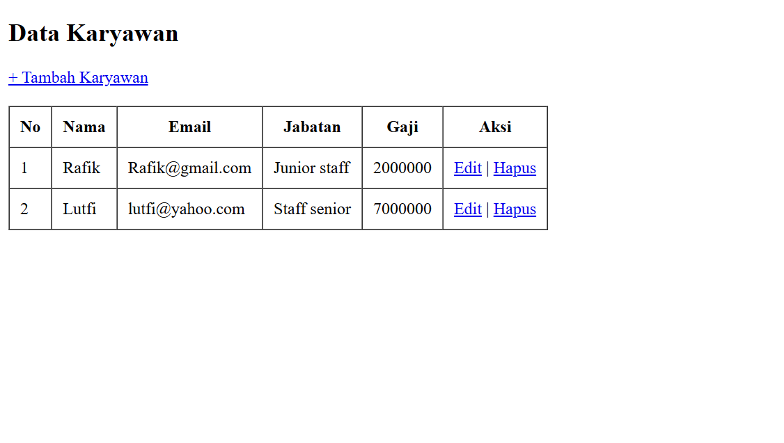 - Berikut adalah contoh data hasil tambah karyawan yang telah kita buat.