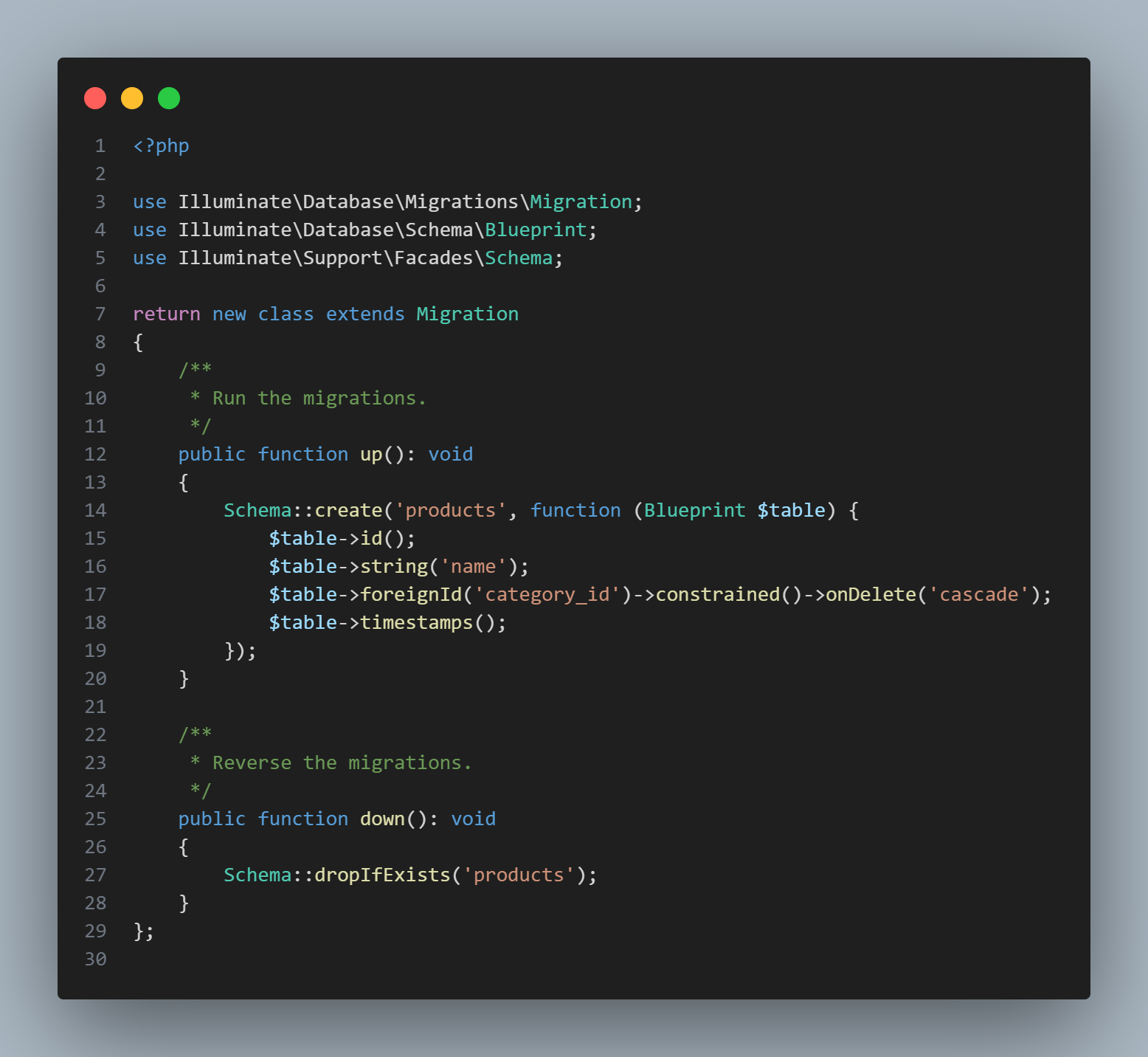 Berikutnya kita membuat migration untuk products caranya dengan menjalankan perintah: