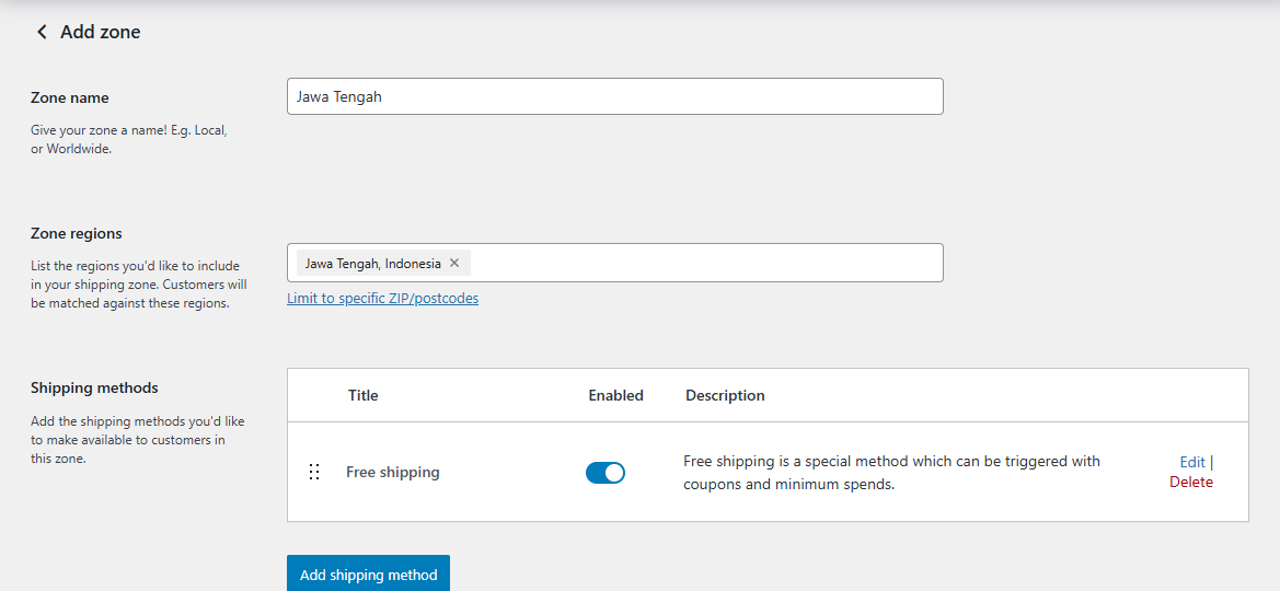 Setelah itu, klik tombol ‘Add shipping method’.