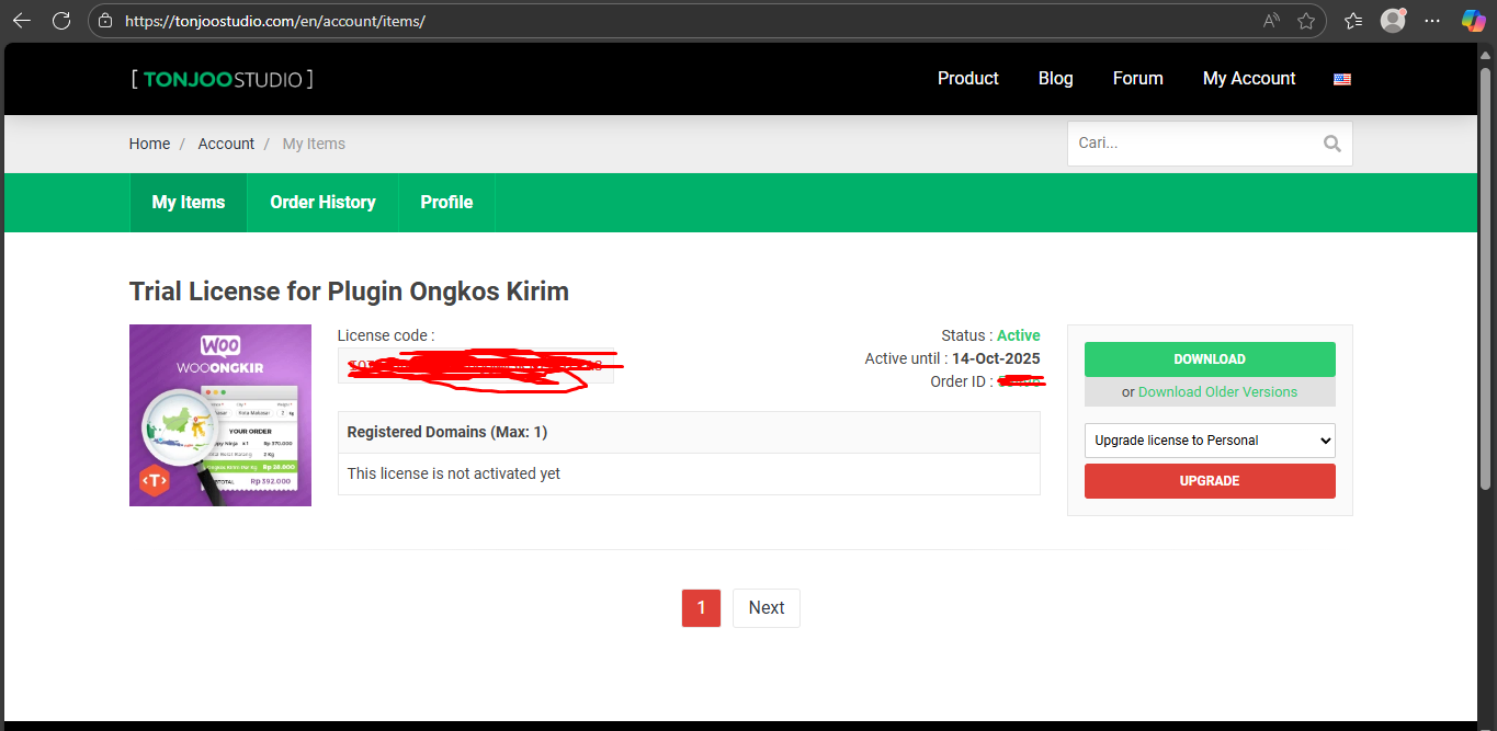- Setelah itu, kita dapat mendownload Plugin Ongkos Kirim dan juga lisensi untuk mengaktifkan pluginnya.