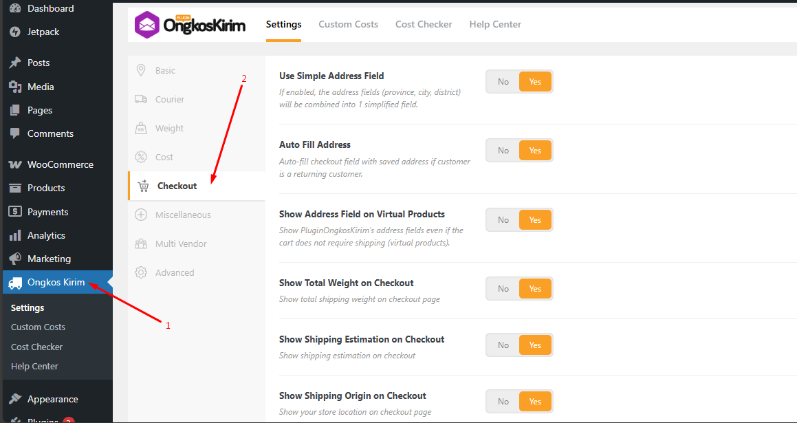 - Agar harga ongkir dapat muncul pada produk atau saat checkout. Pastikan setting plugin pada bagian checkout sudah aktif, terutama pada bagian “Show Shipping Estimation on Checkout”.