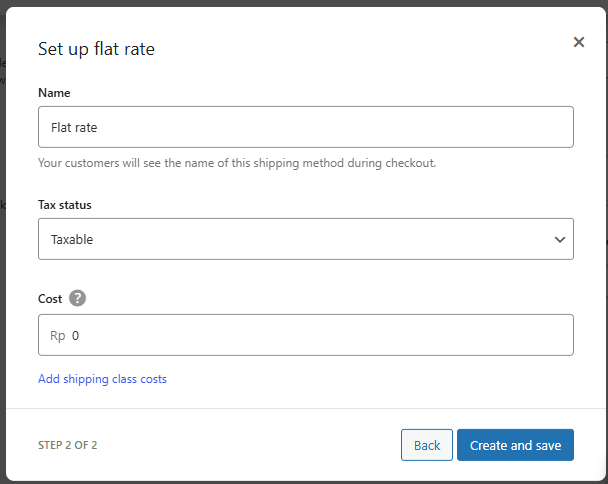Akan muncul beberapa opsi yang harus Anda tentukan dalam mengatur metode pengiriman Flat Rate: