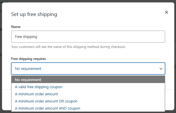 - A minimum order amount AND coupon (Minimal order tertentu dan kupon gratis ongkir) : Pelanggan perlu mencapai minimal order yang ditentukan dan memasukkan kupon gratis ongkir yang kita buat.