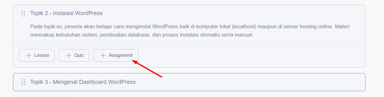 - Klik tombol “+ Assignment” di dalam salah satu topik.