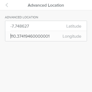 Selain melalui alamat, Anda juga bisa mengatur latitude dan longatitude alamat kantor atau usaha yang akan Anda tambahkan di peta. Untuk mengaturnya, Anda bisa klik tombol “Advanced Location”.