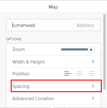 Setelah fitur peta Anda tambahkan ke halaman yang diinginkan, Anda dapat menyesuaikan alamat lokasi sesuai kebutuhan. Caranya, cukup klik elemen peta tersebut, lalu ubah kolom Address dengan alamat yang ingin ditampilkan.
