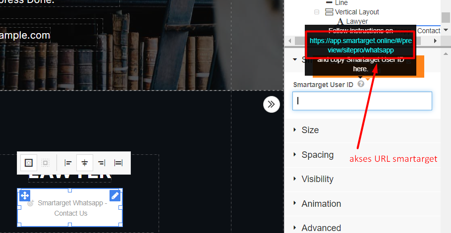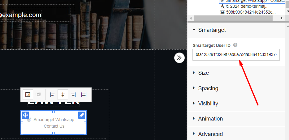 - Lalu masukkan kode tersebut ke kolom di bagian Smartarget User ID pada halaman SitePro editor.