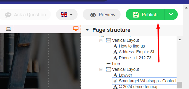 - Setelah itu kllik Publish untuk menampilkan Whatsapp mengambang pada website Anda.