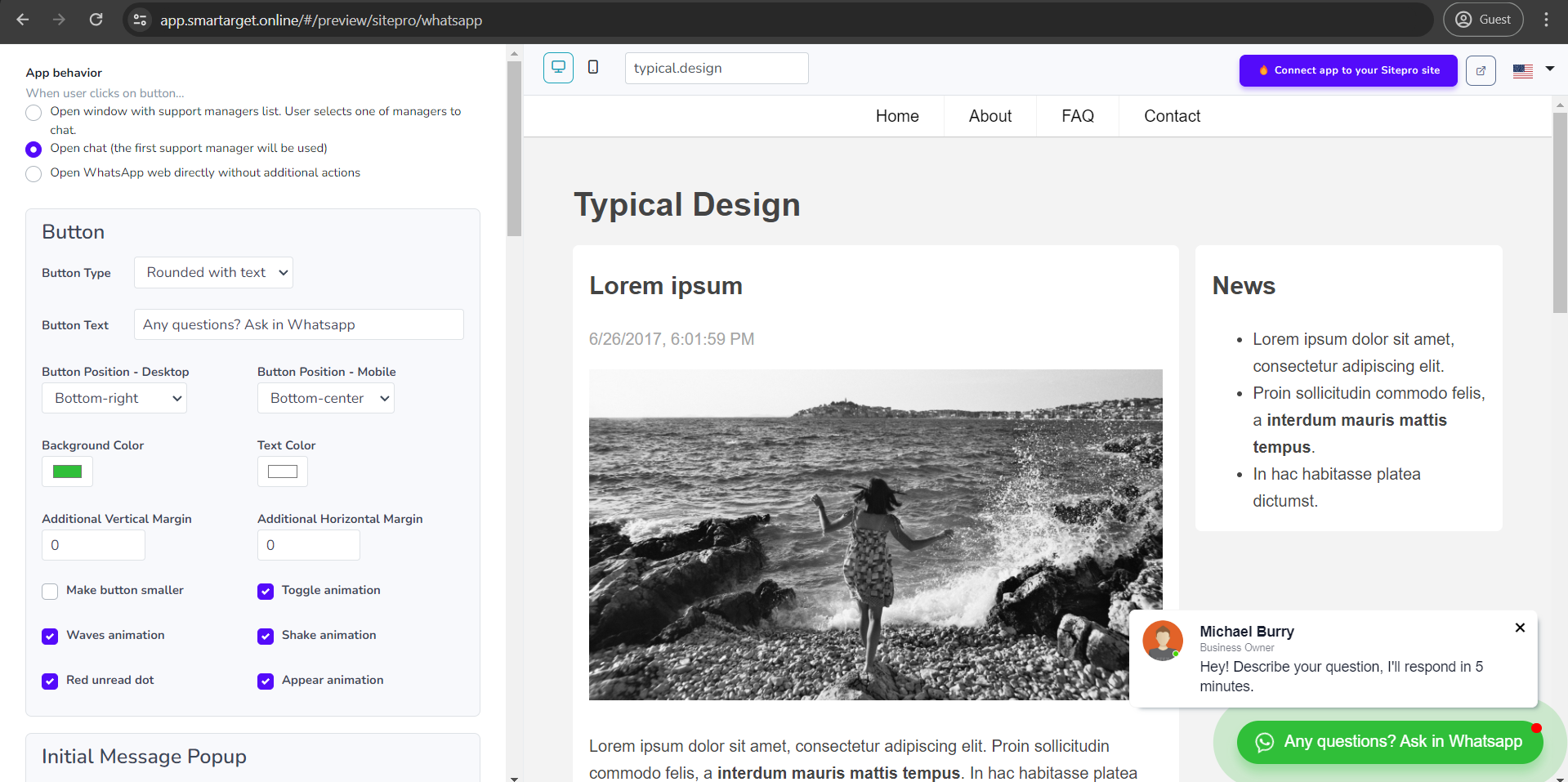 Setelah itu, silahkan berkreasi terkait widget bentuk dan tulisan yang ingin ditampilkan pada bagian pop up Whatsapp mengambangnya.