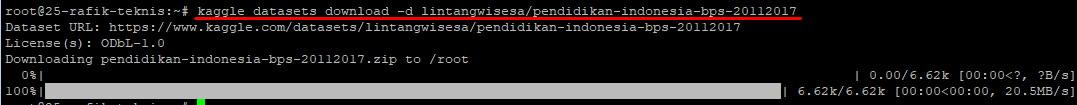 Setelah itu Anda bisa download dataset yang yang akan digunakan, perintahnya: