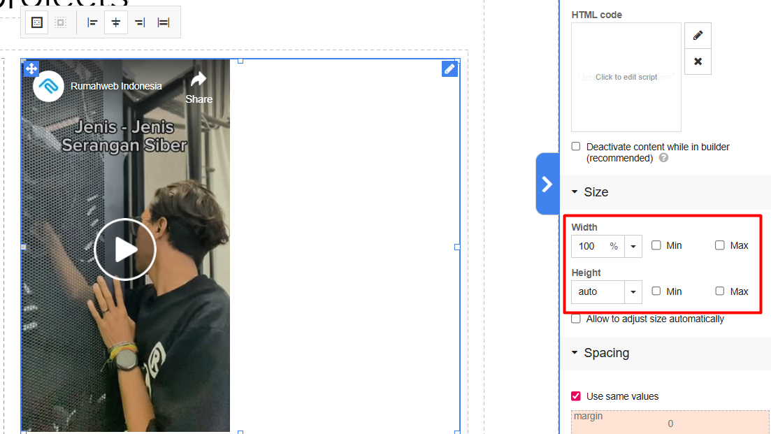 - Anda dapat menyesuaikan size di bagian kanan atau melalui script embed pada area width dan height sesuai keinginan.