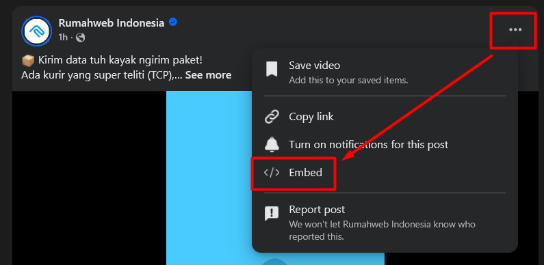 Fitur ini bisa digunakan untuk melakukan embed video dari postingan akun Faacebook Anda.
