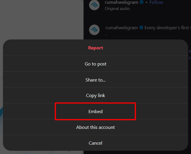 Fitur ini bisa digunakan untuk melakukan embed video dari postingan akun Instagram Anda.