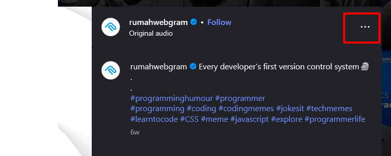 - Pilihlah video instagram yang akan ditampilkan ke dalam website, kemudian klik bagian titik tiga.