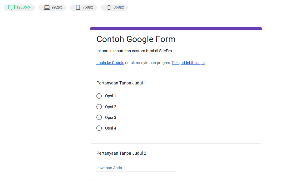 Fitur custom HTML juga bisa digunakan untuk menambahkan Google Form.