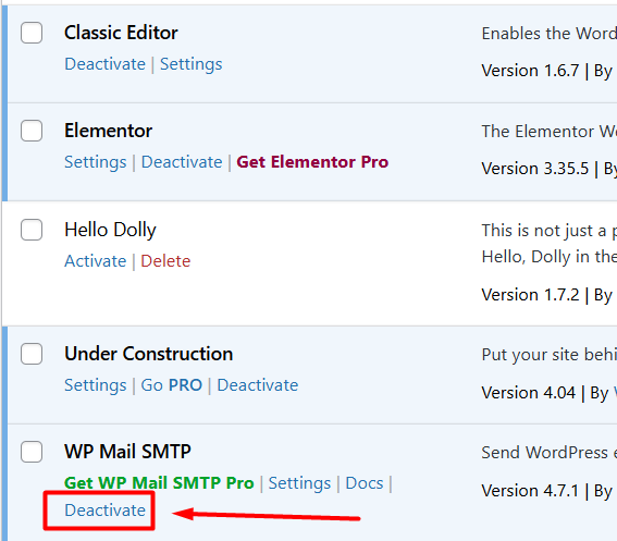 Step 2. Nonaktifkan dan Hapus Plugin dari Dashboard