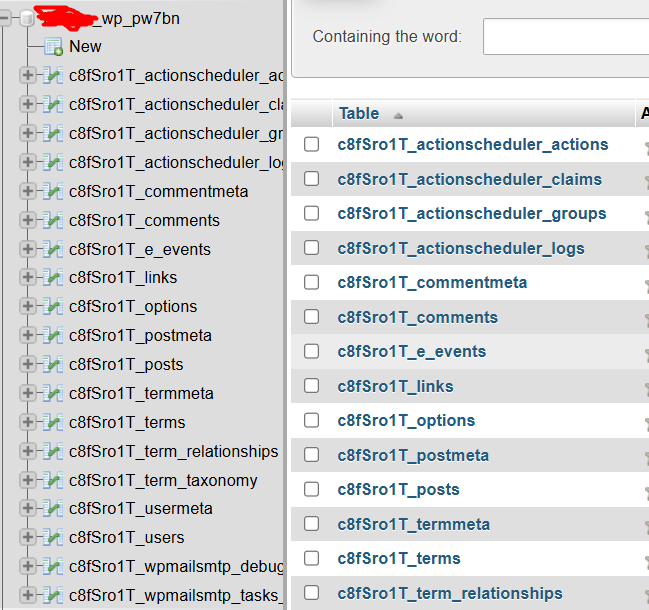 Biasanya nama tabel mengandung nama plugin tersebut.