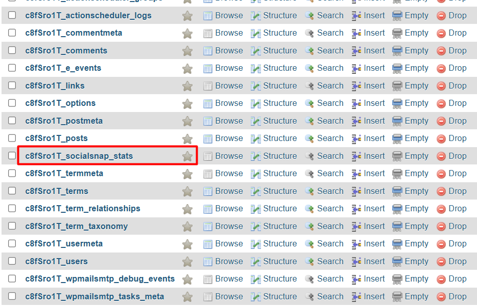Sebagai contoh, jika Anda sebelumnya menggunakan plugin Social Snap dan masih menemukan tabel bernama wp_socialsnap_stats, tabel tersebut merupakan sisa data statistik dari plugin tersebut.