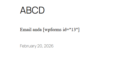 Selama plugin masih aktif, shortcode tersebut akan diproses secara normal dan ditampilkan sebagai elemen yang sesuai, misalnya form kontak. Namun, setelah plugin dinonaktifkan atau dihapus, WordPress tidak lagi mengenali shortcode tersebut. Akibatnya, yang muncul di halaman hanyalah kode mentah seperti: