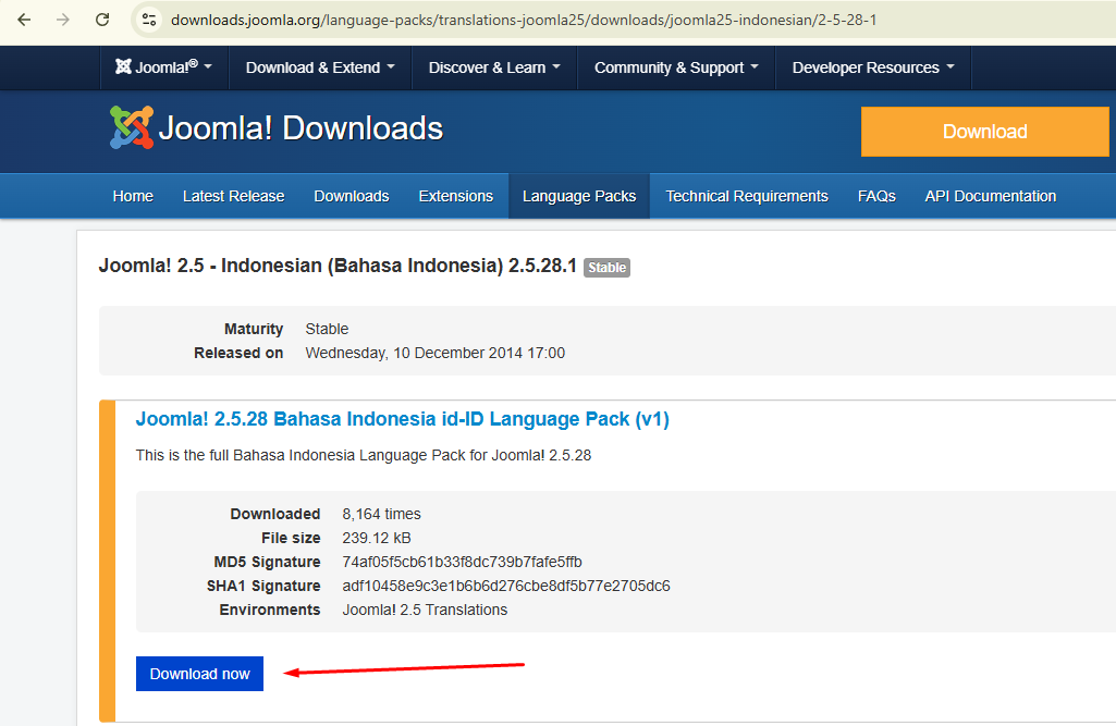 - Silakan download ID Languages Pack dihalaman website resmi Joomla. Bisa klik disini