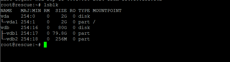 Setelah berhasil melakukan SSH menggunakan rescue mode, langkah selanjutnya adalah melakukan mounting pada partisi disk di VPS. Jalankan perintah dibawah ini untuk melihat partisi mana yang perlu di mount: