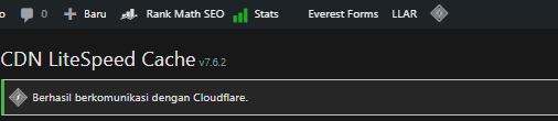 Apabila settingan benar, maka Anda akan menerima feedback “Berhasil berkomunikasi dengan Cloudflare.“