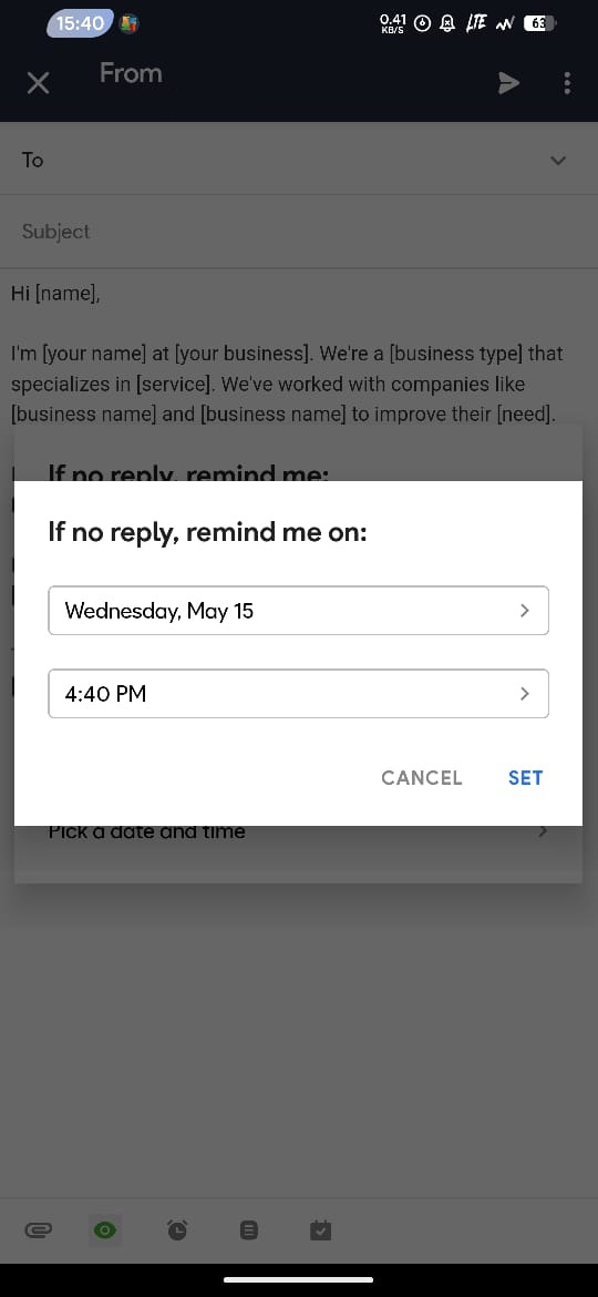 - Klik ikon jam untuk memulai setting waktu Follow-up Reminders.